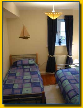 This is a twin bedroom which is decorated with a nautical theme